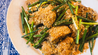 カリカリ食感の柿の種で作る塩唐揚げ柔らかいものには硬いものを合わせるのがベトナムスタイルです。